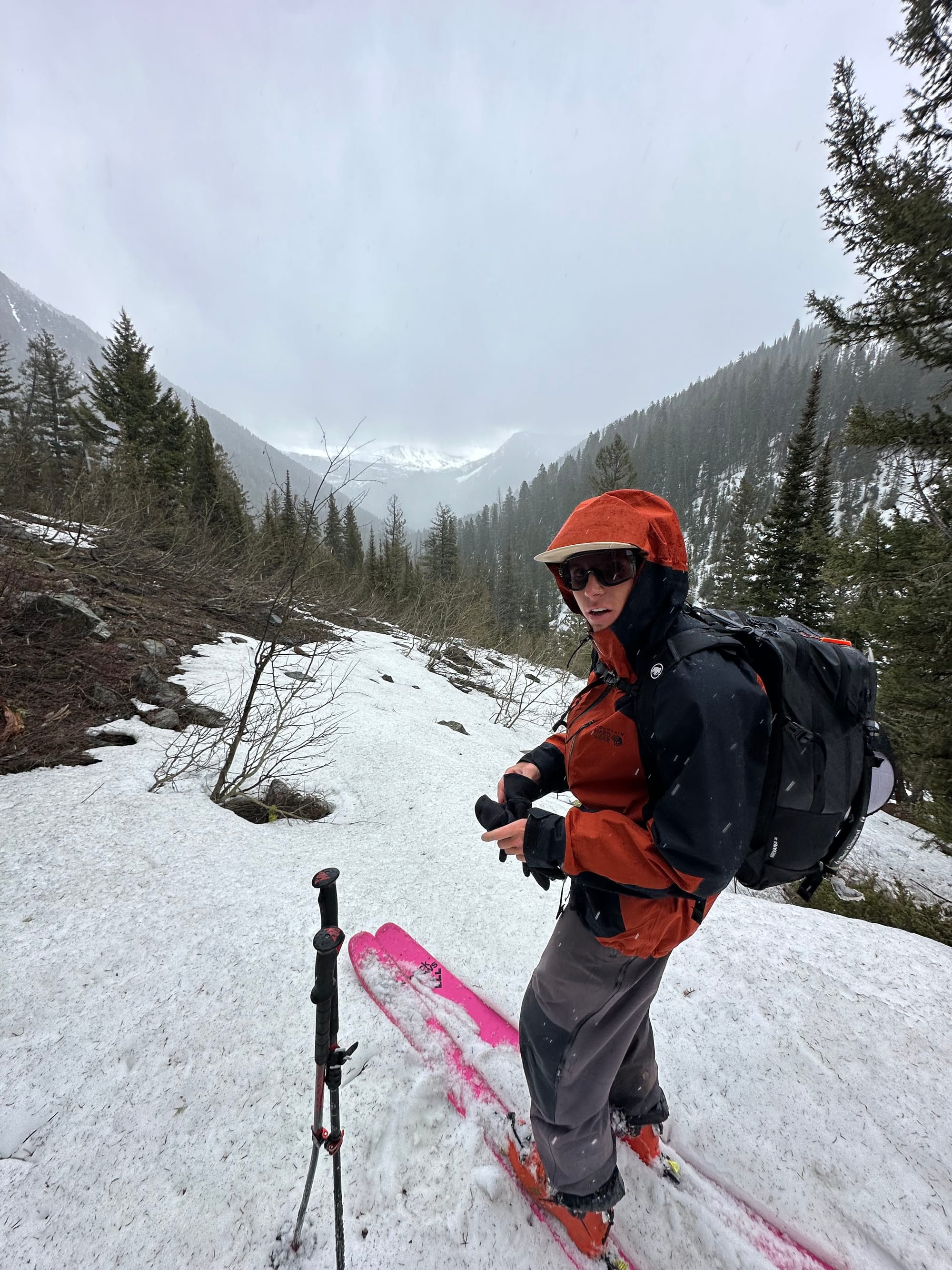 We left Bozeman at about 4:30 AM and began the roughly two-hour drive down to the West Beaver Creek Trailhead aiming to start before 7 AM. Our first goal was accomplished and a summer trail to bring us into the upper basin made for much more efficient travel than the epic I had experienced on Fan just a couple of days prior. The West Beaver Creek trail had gotten battered by flooding a couple of springs prior, which made for some spicy maneuvers around washouts.